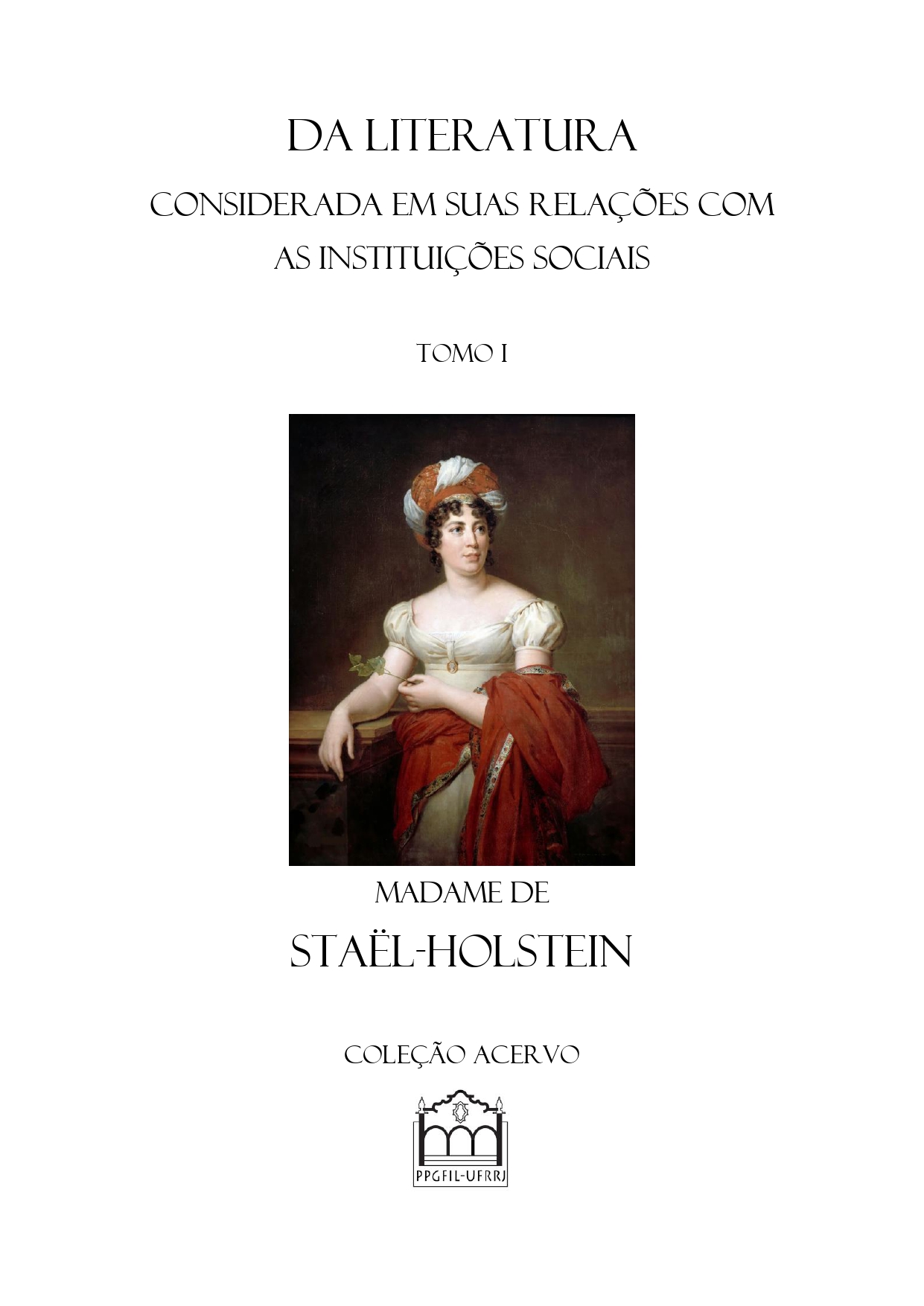 O novo volume da Coleção Acervo contém o primeiro tomo da obra “Da Literatura” de Anne-Louise Germaine de Staël-Holstein, nome que ela própria se deu após a adoção da Alemanha como pátria intelectual, ou simplesmente Germaine de Staël ou, ainda, pelo epíteto mais conhecido, Madame de Staël. Da autora ainda pouco traduzida para o português, esta obra ainda não estava disponível em nossa língua. Se esforçam-se atualmente por sinalizar a importância da produção filosófica de alto nível de autoras mulheres, com esta publicação divulgamos o que não pode ser apenas sinalizado vagamente. “Da Literatura” é obra incontornável por sua defesa incondicional da hipótese do perfeccionismo humano, por sua extensa erudição a propósito da cultura europeia de milênios e pela hipótese, tão central para a obra quanto aquela, a ponto de mostrar-se no seu título completo (Da Literatura considerada em suas relações com as instituições sociais), de que as “instituições sociais” delimitam o modo como a produção intelectual se efetua. Por último, mas não menos importante, a inevitabilidade da obra se faz ver por ela consolidar a noção hoje corrente de “literatura”. Esta obra, que fecha o estupendo século XVIII simbolicamente no exato ano de 1800, é exemplo perfeito da riqueza das Luzes europeias e da modernidade tardia que começava a nascer.